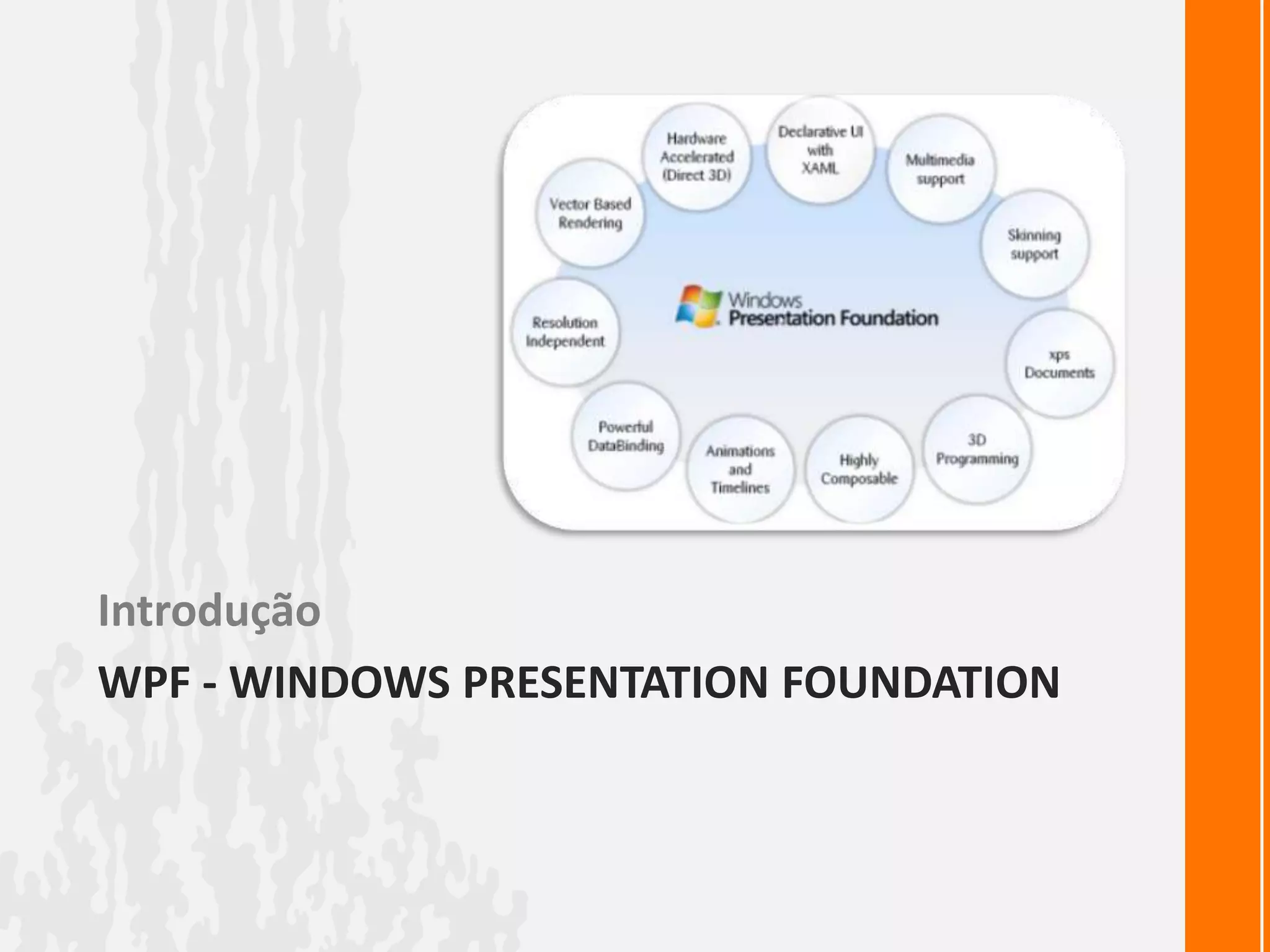 O WPF permite a criação de interfaces ricas com alto grau de personalização através do XAML e do Model-View-ViewModel. Ele separa a interface da lógica, é independente de resolução e permite data binding com fontes externas. O WPF também pode ser usado para aplicações web através do XBAP.