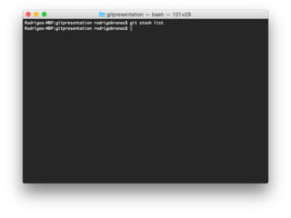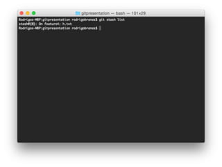 O documento descreve o comando "git stash" que permite armazenar temporariamente alterações no código sem realizar um commit, facilitando mudanças entre branches de forma limpa. Exemplos mostram como armazenar alterações, aplicá-las novamente ou descartá-las, e criar uma nova branch a partir de um stash. Informações sobre Rodrigo Branas, autor do documento, são fornecidas no final.