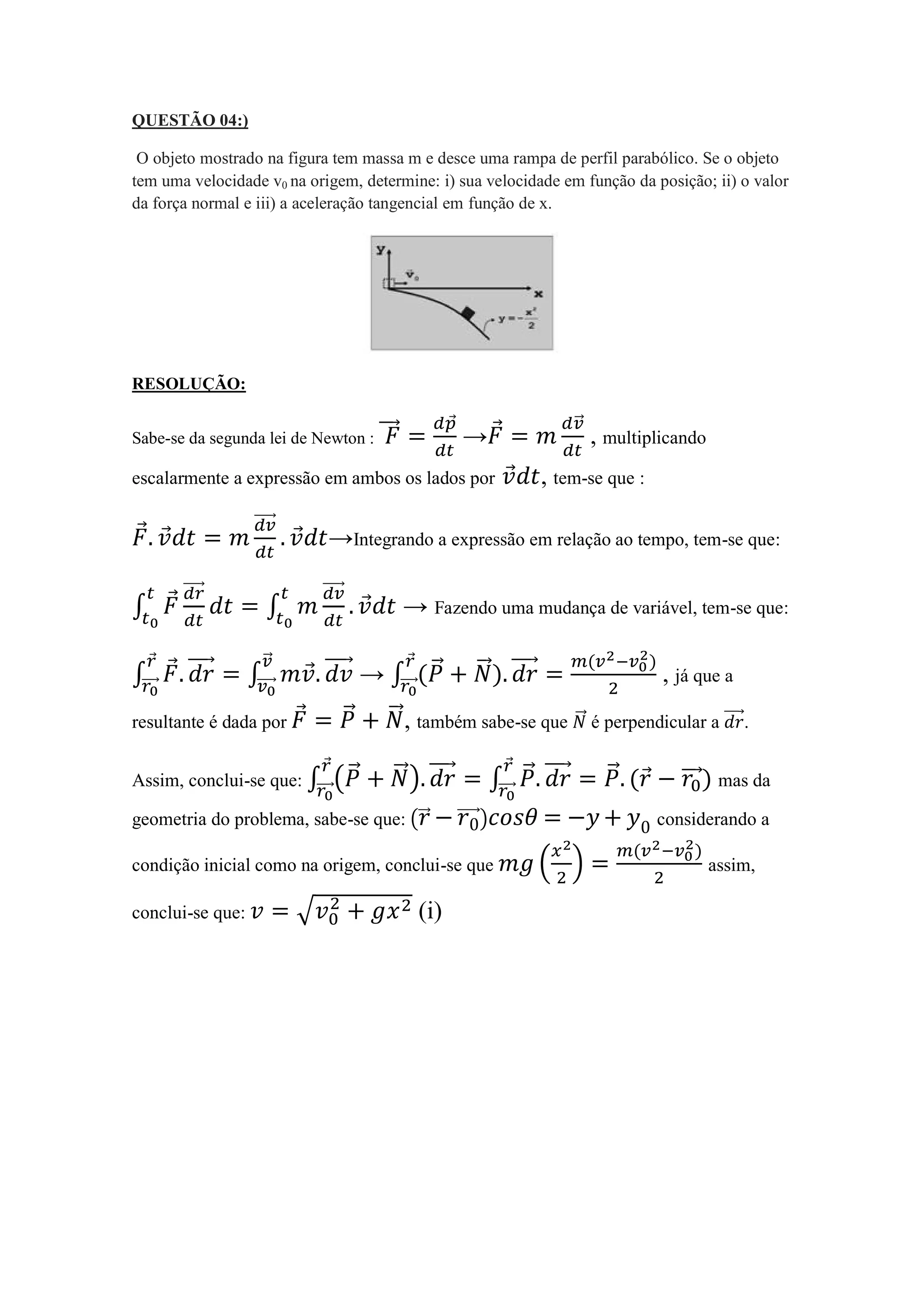 Oobjeto mostrado na figura tem massa m e desce uma rampa de perfil parabólico. Se o objeto