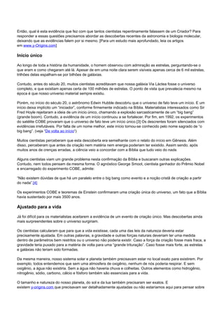 2) A ciência recentemente encontrou evidências que apoiam a visão bíblica de uma criação única do universo e da vida, incluindo um início único do universo e a precisão dos ajustes necessários para a vida.