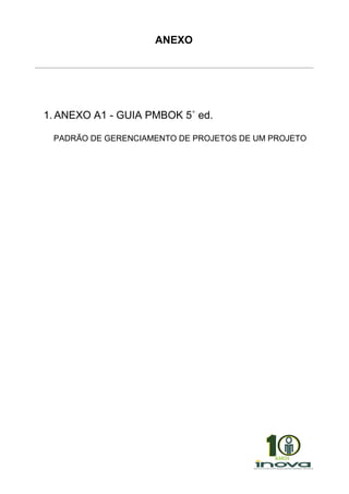 O documento descreve um guia para gerenciamento de projetos de acordo com o PMBOK 5a edição, fornecendo um padrão para gerenciar projetos com foco nos processos, know-how e técnicas necessárias para alcançar os objetivos do projeto.