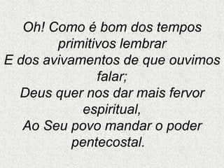 O documento celebra que Deus é o mesmo hoje como no passado, enviando poder pentecostal e salvação para Seu povo. Lembra com saudade os avivamentos primitivos e diz que, apesar de alguns afirmarem que tudo mudou, Deus permanece como um farol enviando poder pentecostal.