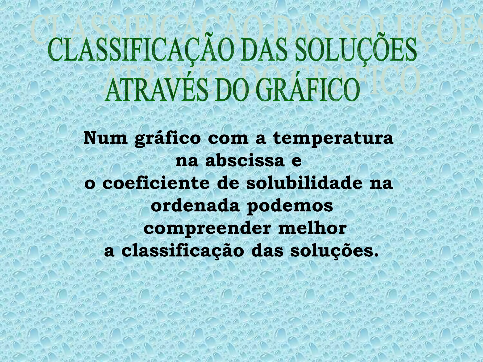 O documento apresenta um gráfico com a solubilidade de uma substância em função da temperatura. A curva mostra que a solubilidade aumenta com a temperatura. Pontos acima da curva representam soluções instáveis e supersaturadas, enquanto pontos abaixo mostram soluções insaturadas.