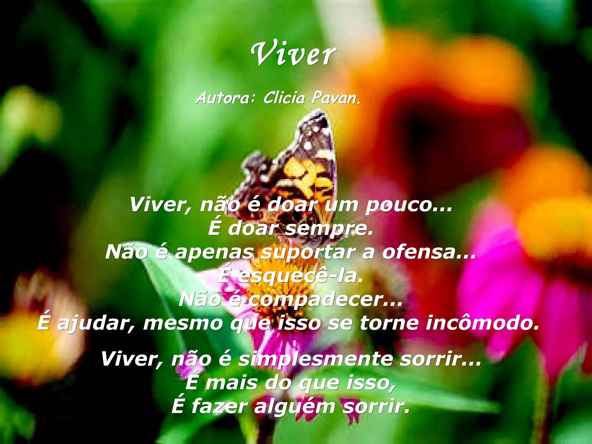 O documento discute como viver significa mais do que apenas existir. Ele argumenta que viver é sobre fazer sacrifícios por outros, como ajudar sem esperar nada em troca e estar disponível para aqueles que precisam. O texto também enfatiza a importância de demonstrar amor e apreço pelas pessoas ao nosso redor enquanto elas ainda estão conosco.