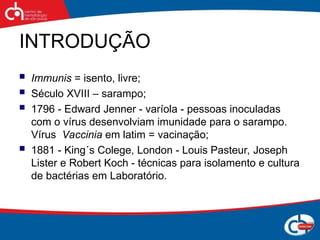O documento aborda os princípios básicos da imunologia, destacando a história e o desenvolvimento dos conceitos de imunidade inata e adquirida, além do papel dos linfócitos na resposta imune. São discutidos os diferentes tipos de anticorpos, suas funções e a importância dos mecanismos de defesa do organismo contra patógenos. O texto também aborda a autoimunidade, a produção de anticorpos policlonais e monoclonais, e as interações entre antígenos e anticorpos.