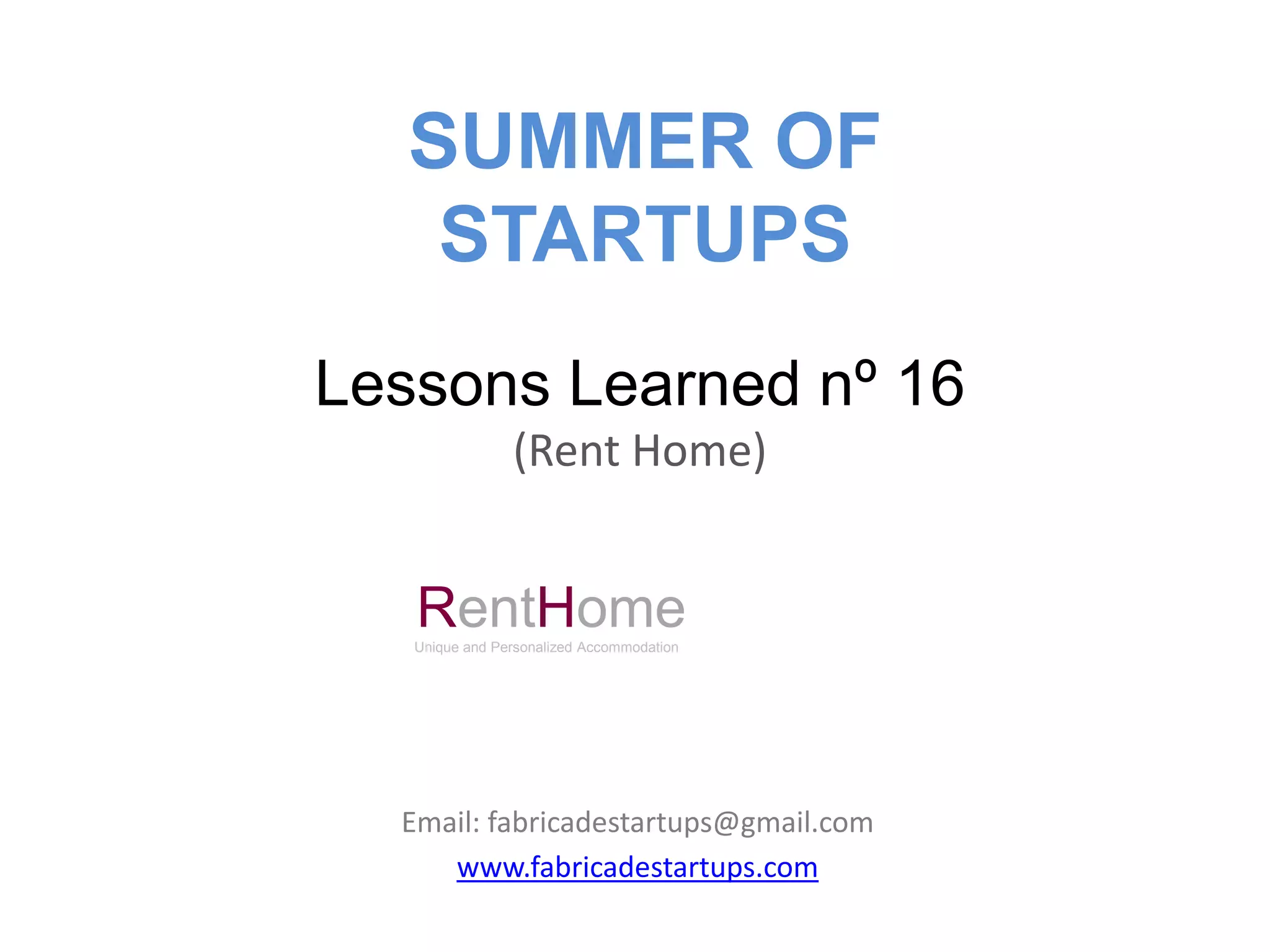 O documento descreve um resumo de uma startup chamada RentHome, que oferece alojamento personalizado em casas portuguesas. A startup visa conectar proprietários de casas de luxo com turistas que desejam experiências únicas, oferecendo serviços hoteleiros de alto nível. Os próximos passos incluem definir custos, fazer parcerias e testar canais de marketing e vendas.