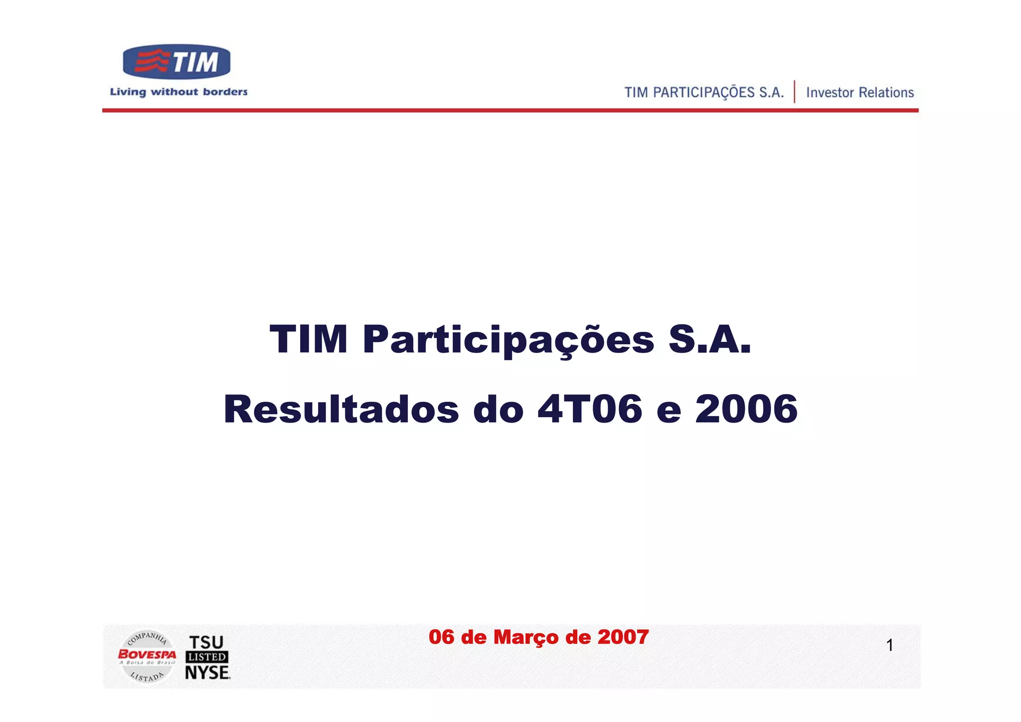 1) A TIM apresentou forte crescimento no 4T06 e em 2006, com aumento de clientes e receita.