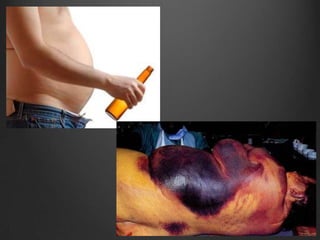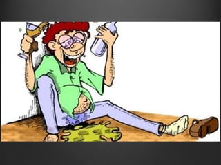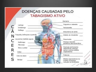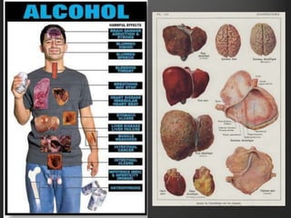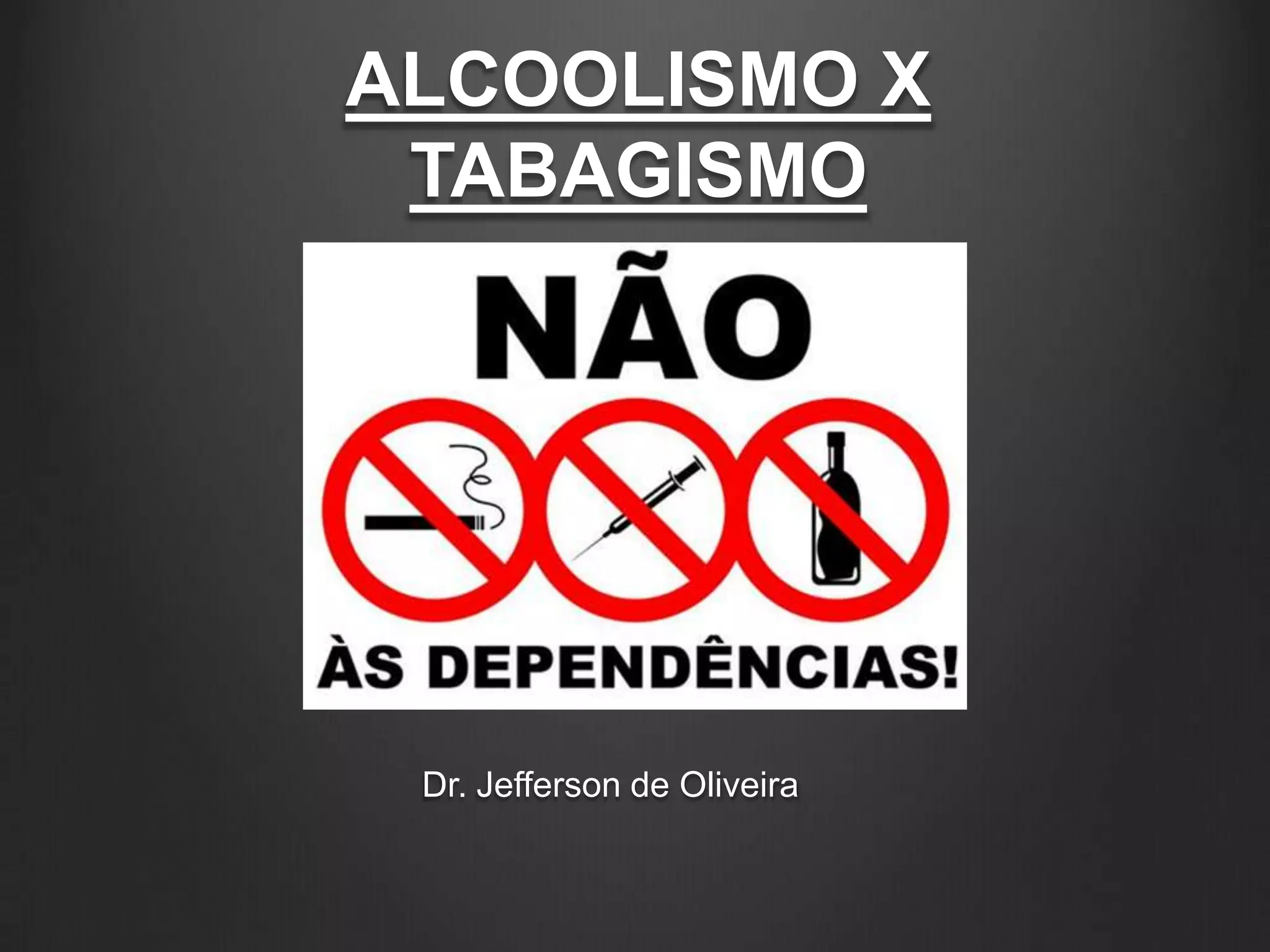 O documento discute alcoolismo e tabagismo, comparando os efeitos do álcool e do tabaco na saúde. Explica que o alcoolismo é uma doença causada pelo consumo excessivo de álcool ao longo do tempo, levando à dependência física e psicológica, enquanto o tabagismo causa vício da nicotina e é responsável por diversas doenças e mortes. Também descreve os componentes tóxicos presentes no cigarro e os riscos de fumar para fumantes ativos e passivos.