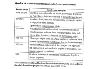 1. O documento discute os conceitos e procedimentos de Estudo de Impacto Ambiental (EIA), Avaliação de Impacto Ambiental (AIA) e Relatório de Impacto Ambiental (RIMA) no Brasil.