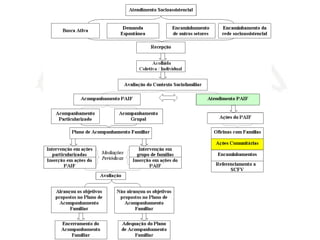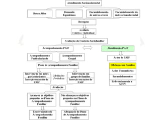 Este documento fornece orientações sobre oficinas com famílias no âmbito do Serviço de Proteção e Atendimento Integral à Família (PAIF/SAF). Ele discute os objetivos, princípios, formatos e temas das oficinas, com foco em fortalecer vínculos familiares e comunitários, promover acesso a direitos e o protagonismo das famílias.