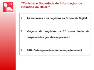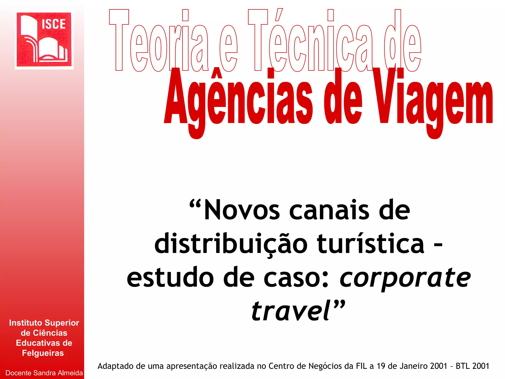 [1] O documento discute novos canais de distribuição para viagens corporativas, como reservas online.