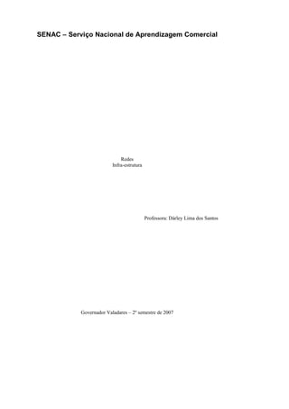 O documento discute os principais conceitos de redes de computadores, incluindo: