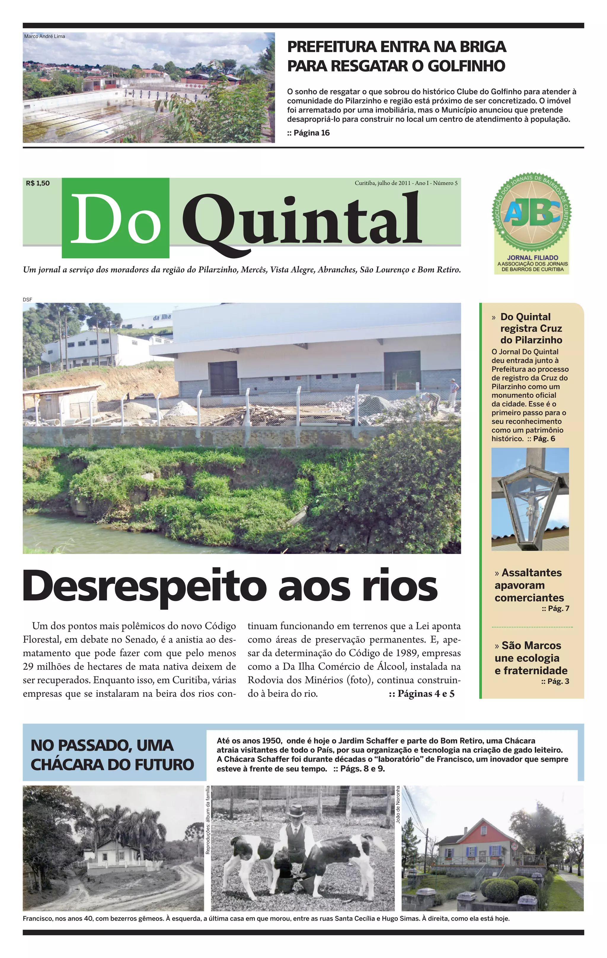 O jornal relata que a Prefeitura de Curitiba pretende desapropriar um imóvel que abrigava o histórico Clube do Golfinho para construir um centro comunitário no local. O objetivo é atender a população da região do Pilarzinho. Além disso, o jornal comenta sobre uma campanha da Paróquia São Marcos que une a coleta de óleo de cozinha usado com a ajuda a necessitados e a preservação ambiental.