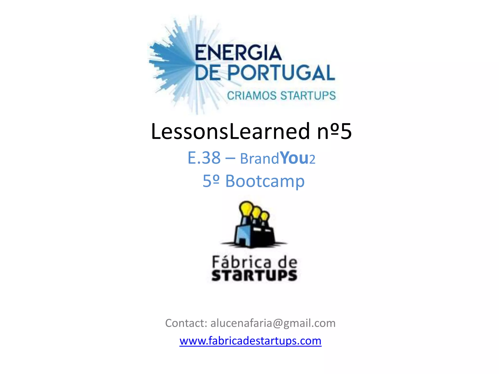 O documento resume o trabalho desenvolvido por uma equipa no 5o Bootcamp da Fábrica de Startups para o projeto BrandYou2, uma plataforma que pretende conectar técnicos-profissionais e freelancers com empresas. A equipa testou um protótipo, analisou resultados de campanhas, e identificou os próximos passos como testar o protótipo, rever o segmento de clientes e desenvolver mais o site.