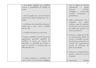 Este documento descreve as condições humanas e materiais necessárias para o funcionamento de uma biblioteca escolar. A liderança do professor bibliotecário é essencial para garantir a articulação com a escola e a gestão eficaz dos recursos. A equipa deve ter formação adequada e trabalhar de forma integrada para apoiar as necessidades dos utilizadores. Os espaços e equipamentos da biblioteca devem ser apropriados e responder às solicitações da comunidade escolar.