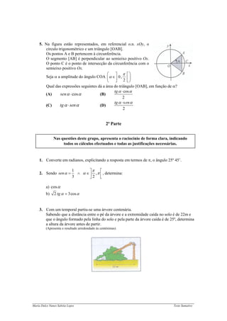 2. A primeira parte contém 5 questões de múltipla escolha sobre trigonometria.