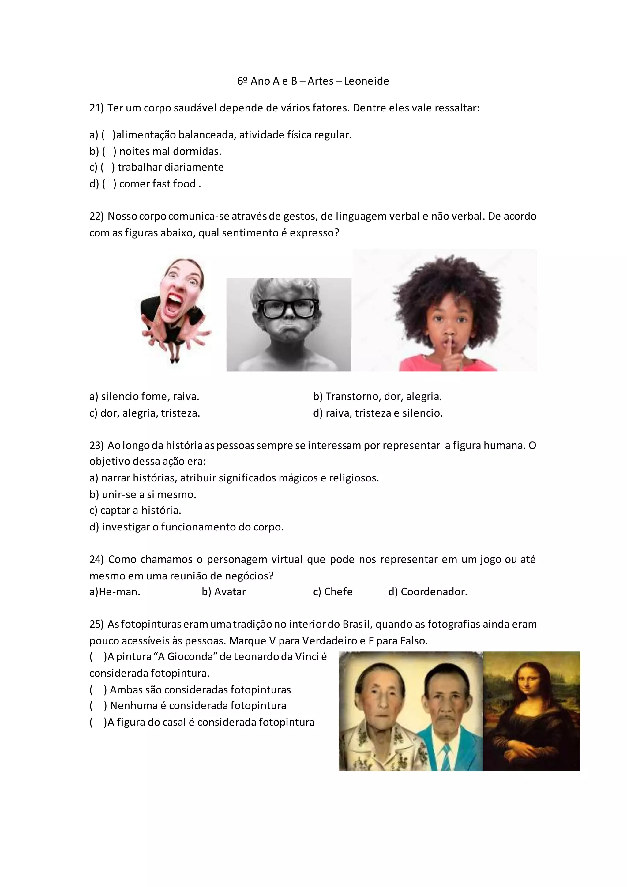 2) A figura mostrada expressa alegria.