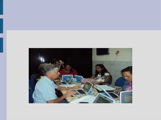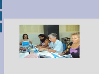 O documento descreve o sexto dia de formação de uma escola municipal, que incluiu a socialização de regras para o uso de um computador portátil na sala de aula, um termo de compromisso simbólico para os alunos, informações sobre um projeto educacional e a apresentação de um programa de desenho e jogos educativos para computador.