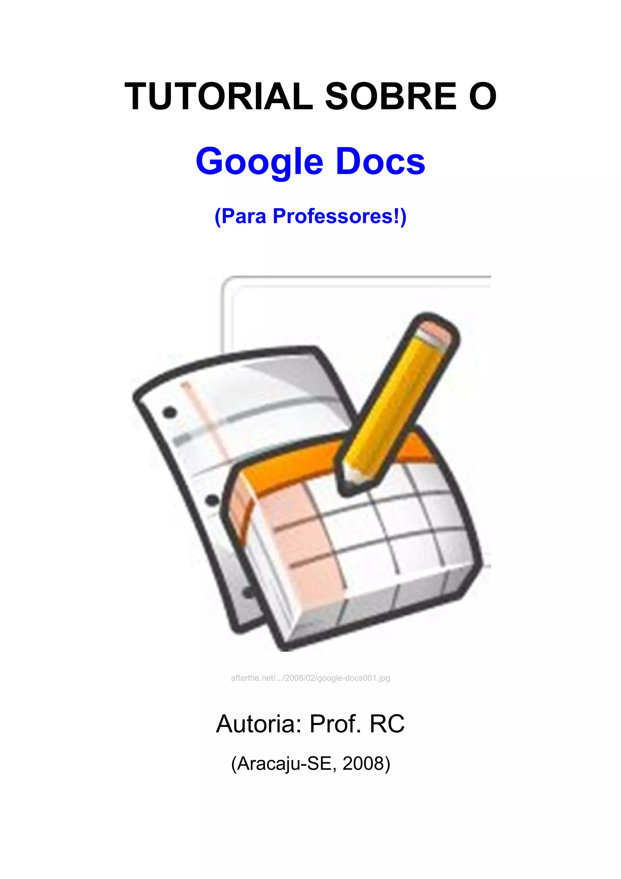 O documento fornece um tutorial sobre o Google Docs, explicando como criar e editar documentos, apresentações, planilhas e formulários online de forma colaborativa. O tutorial descreve as telas iniciais de acesso e as principais ferramentas do Google Docs para editar e organizar arquivos na nuvem.
