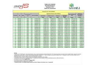 O documento apresenta tabelas de vendas de unidades de um empreendimento imobiliário chamado Serenitá Residence, com previsão de início de obra em agosto de 2014 e entrega em agosto de 2017. As tabelas detalham os valores de venda de cada unidade por pavimento, tipo, área e valor total ao longo dos 44 meses de obra, com pagamentos de sinal, balões anuais e mensais.