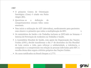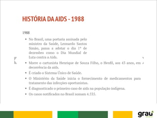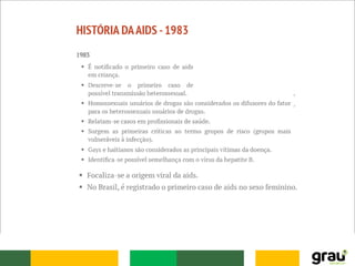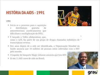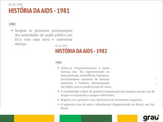O documento descreve as principais informações sobre a história da AIDS, incluindo: