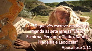 A tabela apresenta uma linha do tempo da ilha grega de Patmos, localizada no Mar Mediterrâneo, dividida em períodos entre 30 a.C. até os dias atuais, destacando a localização geográfica constante da ilha ao longo dos séculos.