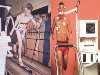 O documento discute o que é VO2 máximo e como ele pode ser medido direta ou indiretamente. Existem vários testes para estimar o VO2 máximo, incluindo testes preditivos baseados em características do indivíduo, testes submáximos em esteira ou cicloergômetro, e testes de um estágio na esteira. As fórmulas para calcular o VO2 máximo a partir dos resultados dos testes são apresentadas.