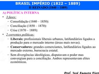 O documento descreve o período do II Reinado do Império Brasileiro de 1840 a 1889. Durante este período: