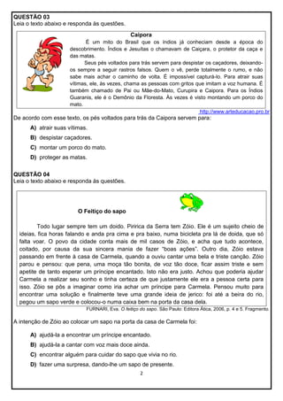 AVALIAÇÃO DIAGNÓSTICA2013 – LÍNGUA PORTUGUESA - 5º ANO ENSINO FUNDAMENTAL.