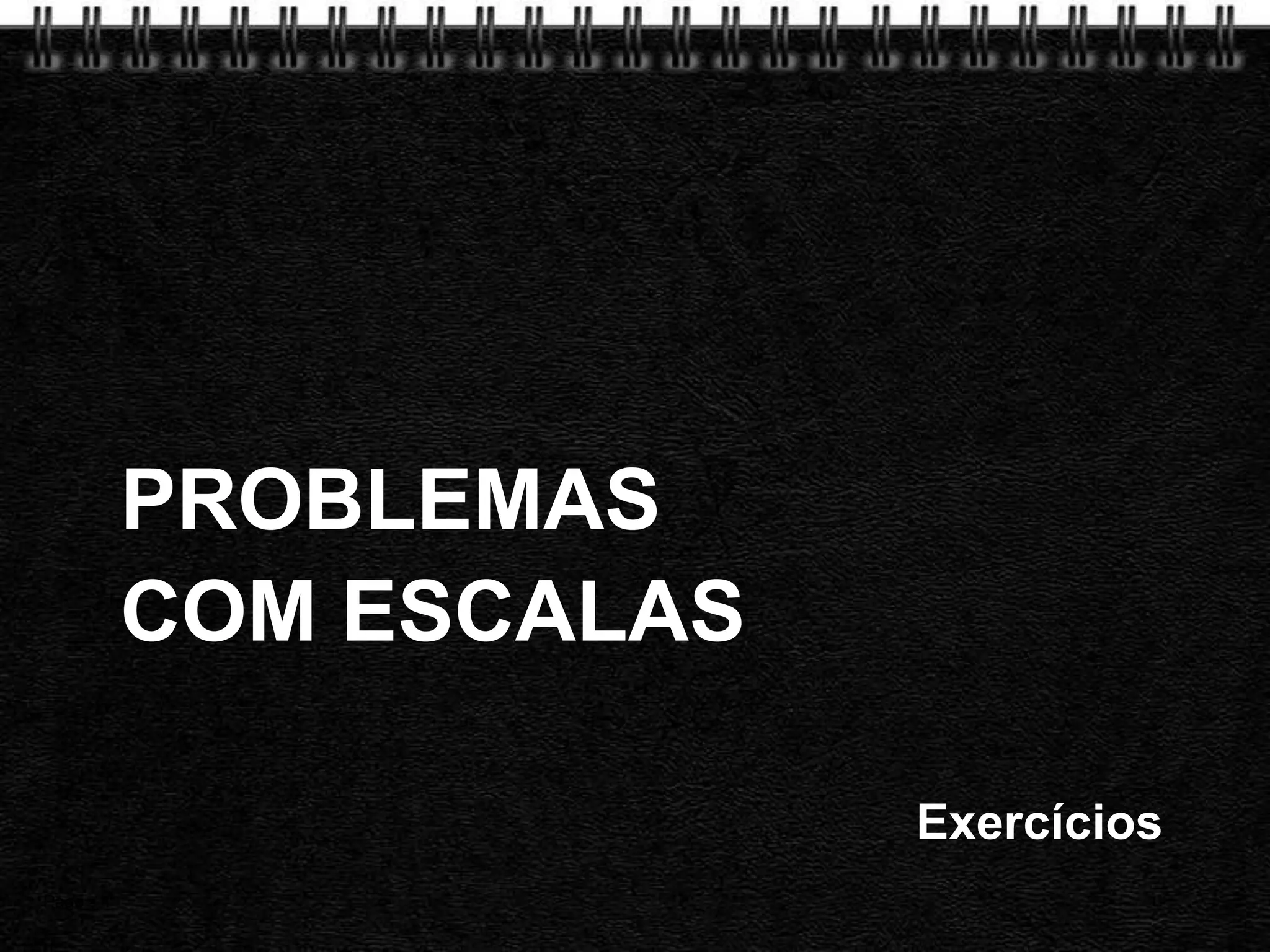 O documento apresenta três exercícios sobre escalas em mapas: 1) calcular a distância real entre cidades dadas a distância no mapa e a escala, 2) calcular a distância no mapa dado a distância real e a escala, 3) calcular a escala dado a distância real e no mapa. As respostas encontradas foram 180km, 2cm e 1/2.000.000 respectivamente.