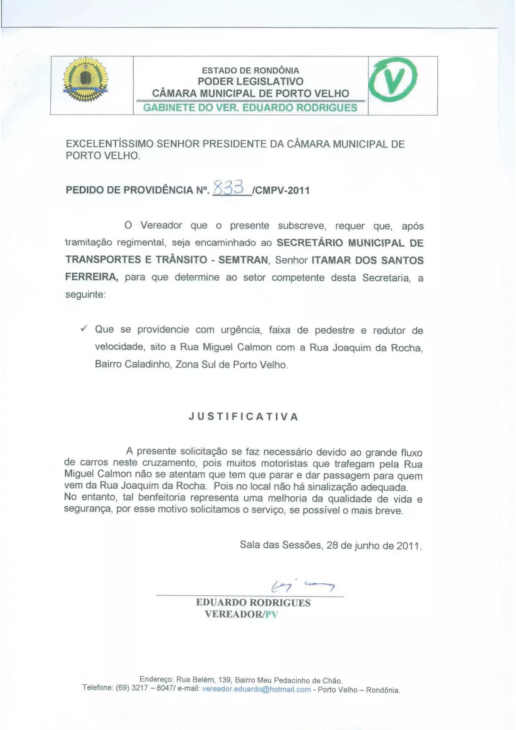 PEDIDO DE PROVIDÊNCIA 833