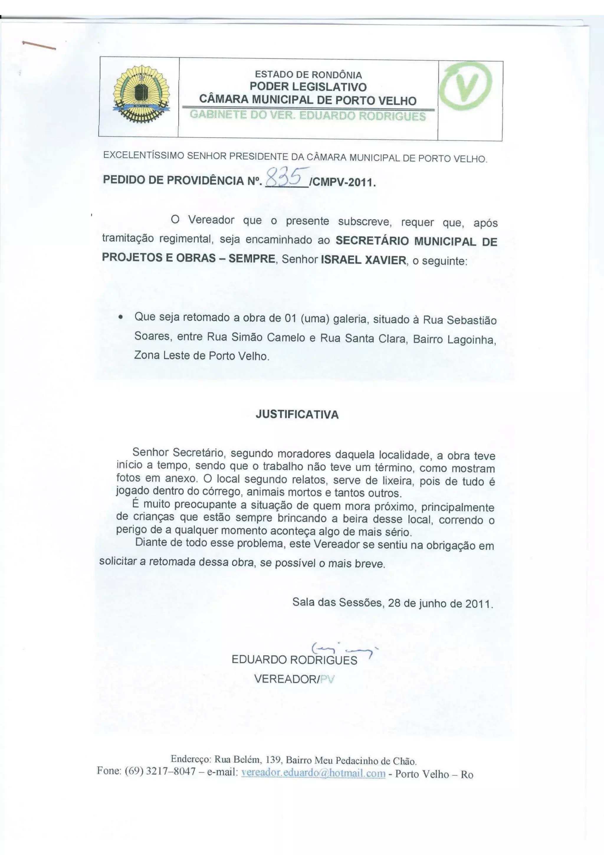 PEDIDO DE PROVIDÊNCIA 835
