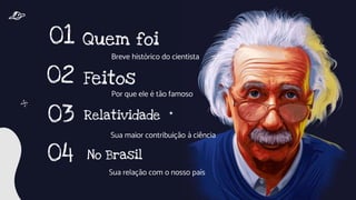 Albert Einstein, considerado o pai da física moderna, revolucionou a ciência com a teoria da relatividade, que explica a relação entre espaço, tempo e gravidade. Ele ganhou um Prêmio Nobel por seus estudos sobre o efeito fotoelétrico e visitou o Brasil em 1925, onde enfrentou dificuldades para se comunicar. A observação de um eclipse total do sol em 1919 no Brasil foi crucial para validar sua teoria da relatividade geral.