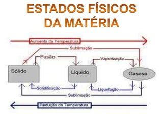 A matéria ocupa espaço e tem massa. O volume refere-se ao espaço ocupado por um corpo, enquanto a massa mede a inércia, ou seja, a tendência de um corpo permanecer em repouso ou movimento. Quanto maior a massa, maior a força necessária para alterar a velocidade de um corpo. A matéria pode ser dividida em partes menores sem alterar suas propriedades.