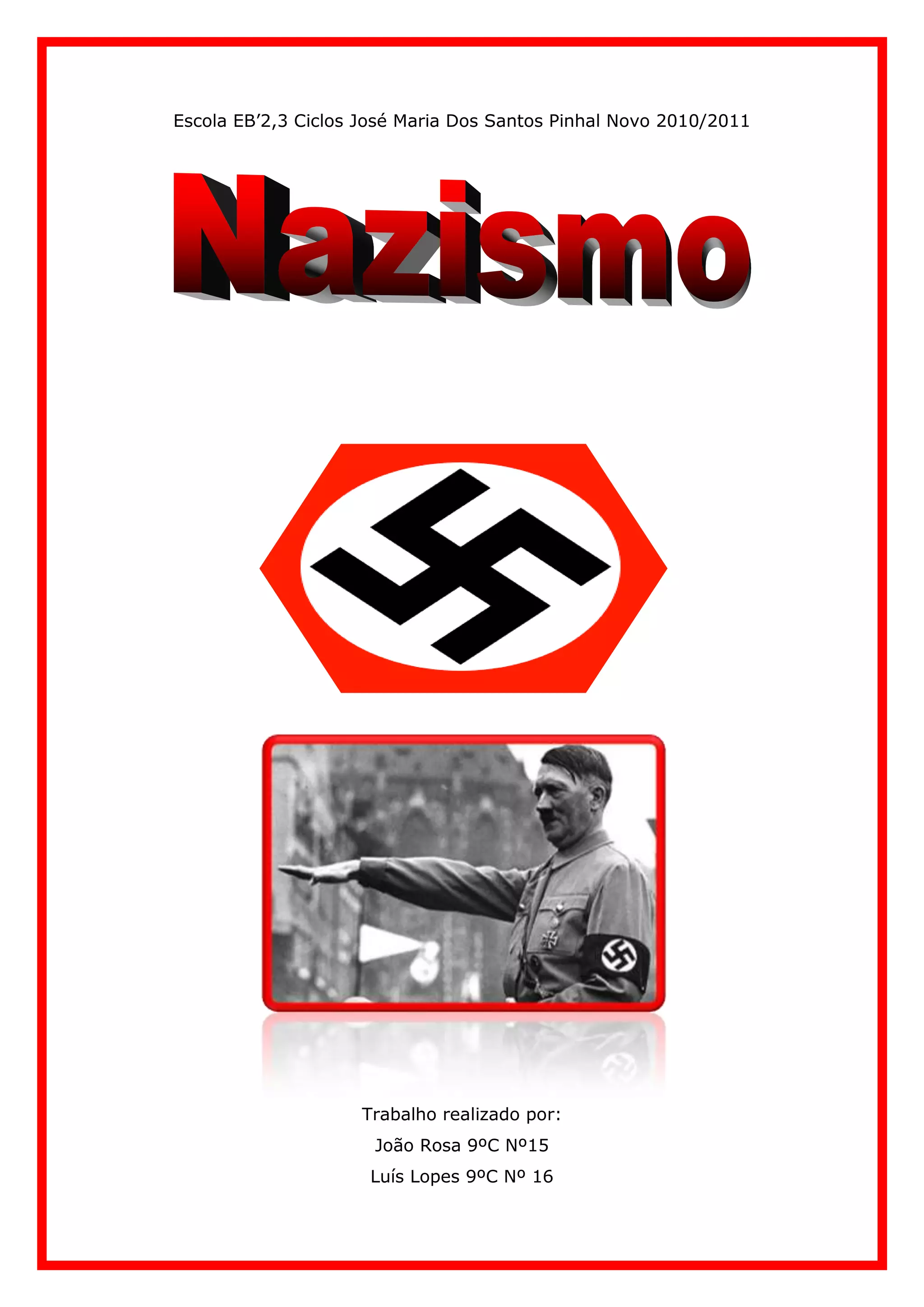 Este documento descreve o nazismo na Alemanha entre 1933 e 1945. Resume a ideologia, organização e história do partido nazi liderado por Adolf Hitler, incluindo seus principais objetivos como o anti-semitismo e o totalitarismo. Também discute figuras importantes do regime como Hitler e como o nazismo chegou ao poder na Alemanha em 1933 antes de ser derrotado em 1945.