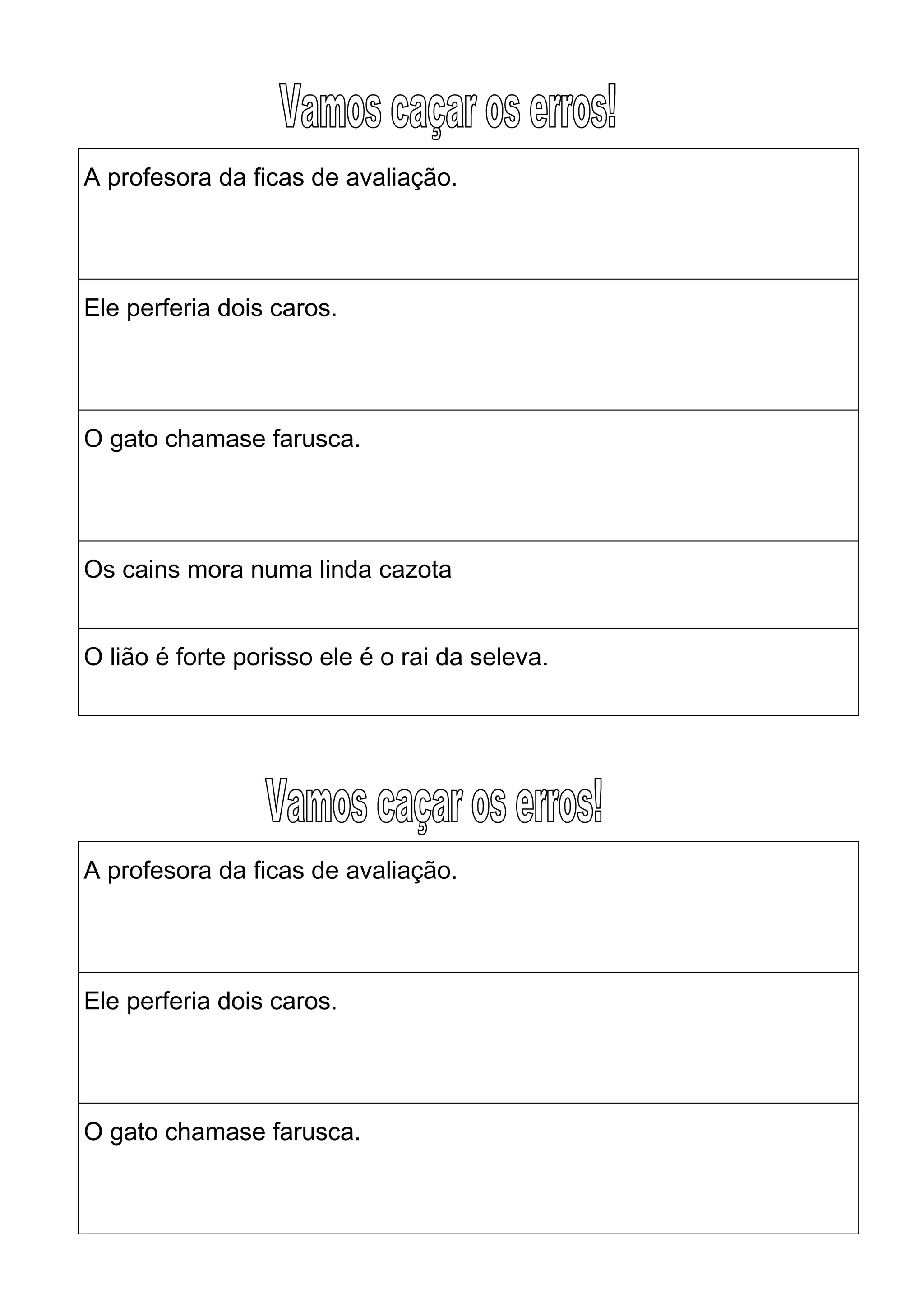 A profesora da ficas de avaliação.