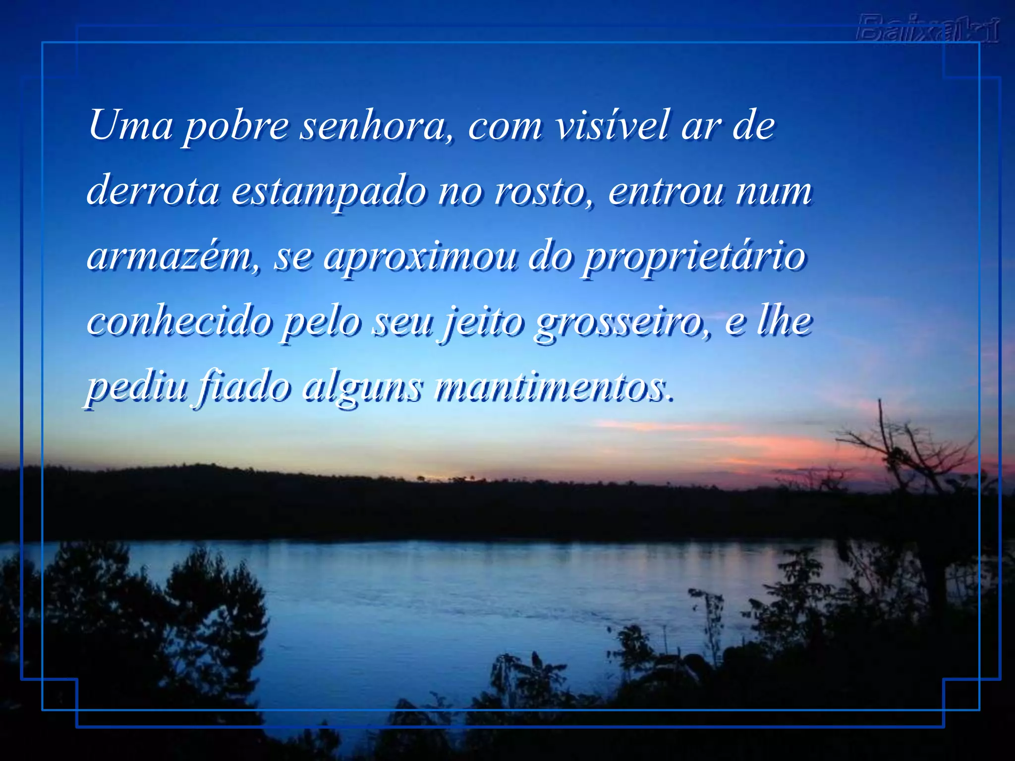 Uma mulher pobre com um marido doente e sete filhos pede fiado mantimentos a um comerciante rude, mas ele recusa. Um cliente paga por sua compra e convence o comerciante a dar mantimentos de acordo com o peso de uma lista da mulher. Surpreendentemente, sua oração pesa mais do que qualquer lista poderia.