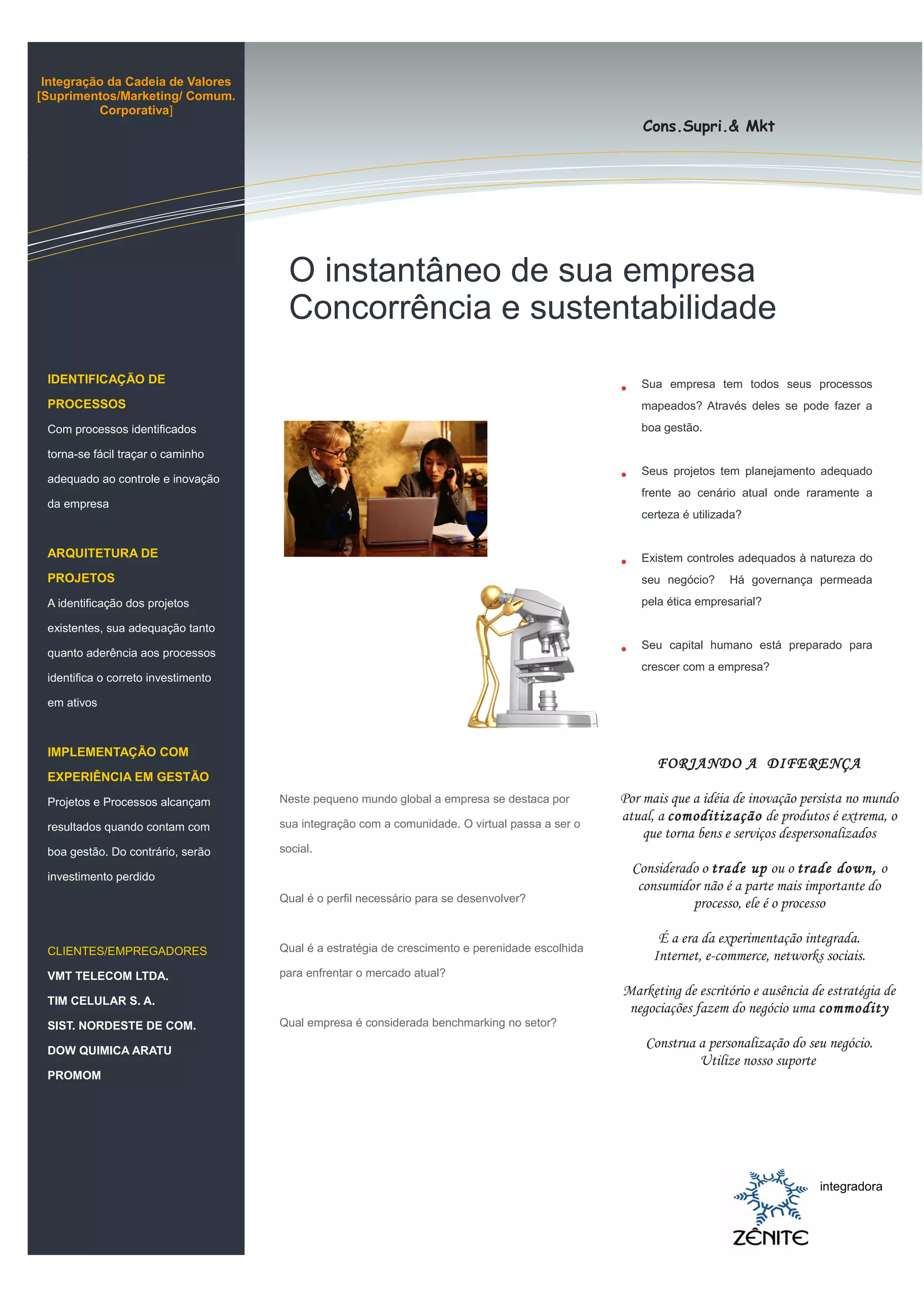O documento discute a importância de mapear processos, planejar projetos considerando o cenário atual e ter controles adequados ao negócio. Também aborda a necessidade de o capital humano estar preparado para o crescimento da empresa e a importância da integração com a comunidade e estratégias de crescimento sustentável.