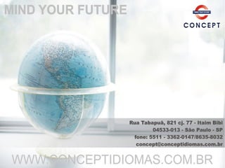A Concept é uma empresa especializada no ensino de idiomas e culturas estrangeiras com mais de 13 anos de experiência. Eles oferecem diversos programas de idiomas, incluindo geral, de negócios e de sobrevivência, assim como cursos especiais. A Concept também fornece serviços de realocação de expatriados para facilitar sua adaptação em cidades brasileiras.