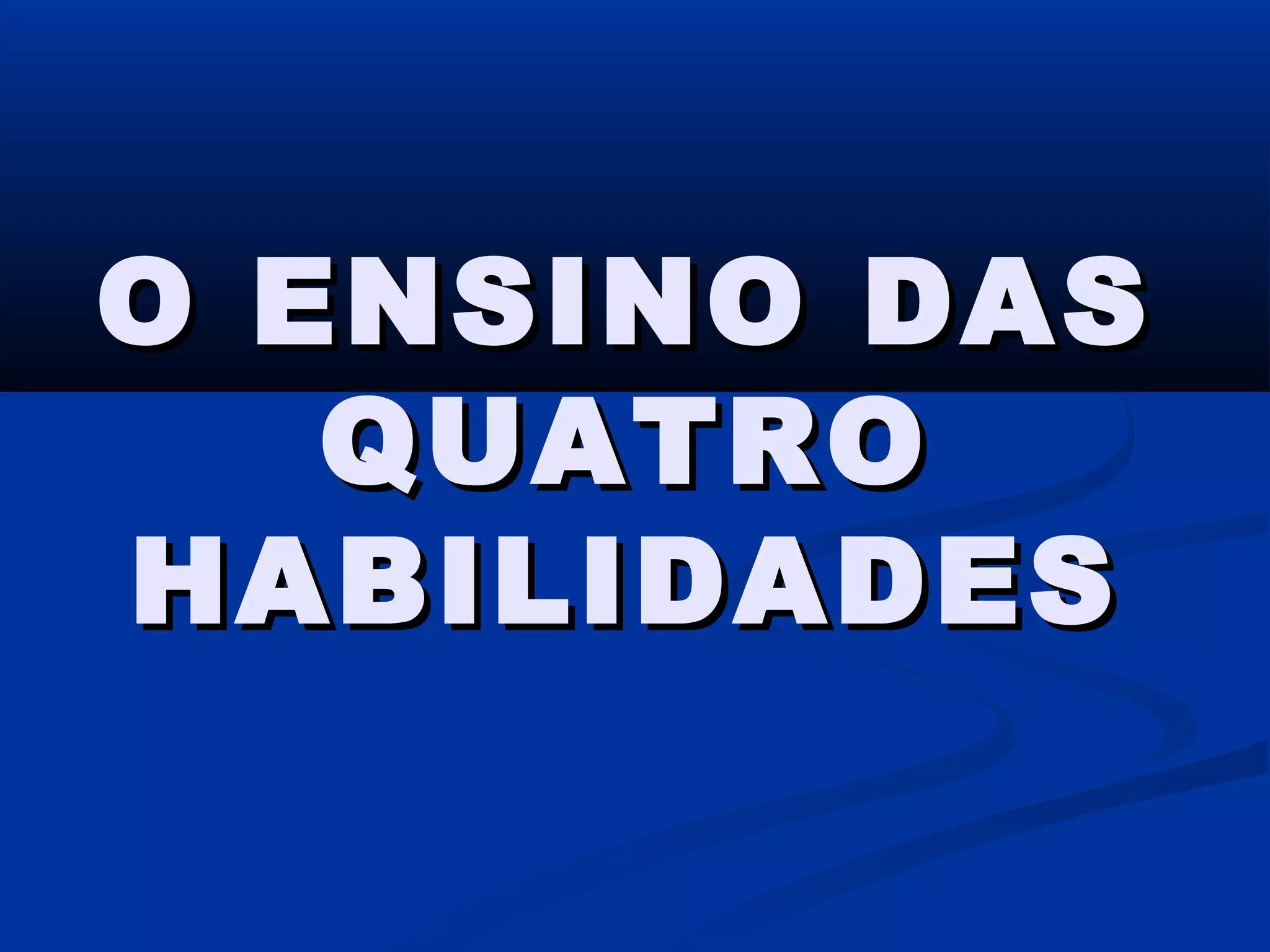 O documento discute o ensino das quatro habilidades linguísticas no aprendizado de inglês - falar, ouvir, ler e escrever. Ele explica que as habilidades devem ser ensinadas de forma integrada e de acordo com as necessidades dos alunos, e não de forma isolada. Além das quatro habilidades principais, o documento também discute habilidades sociais, de estudo e de autoconsciência importantes para o aprendizado de um idioma.