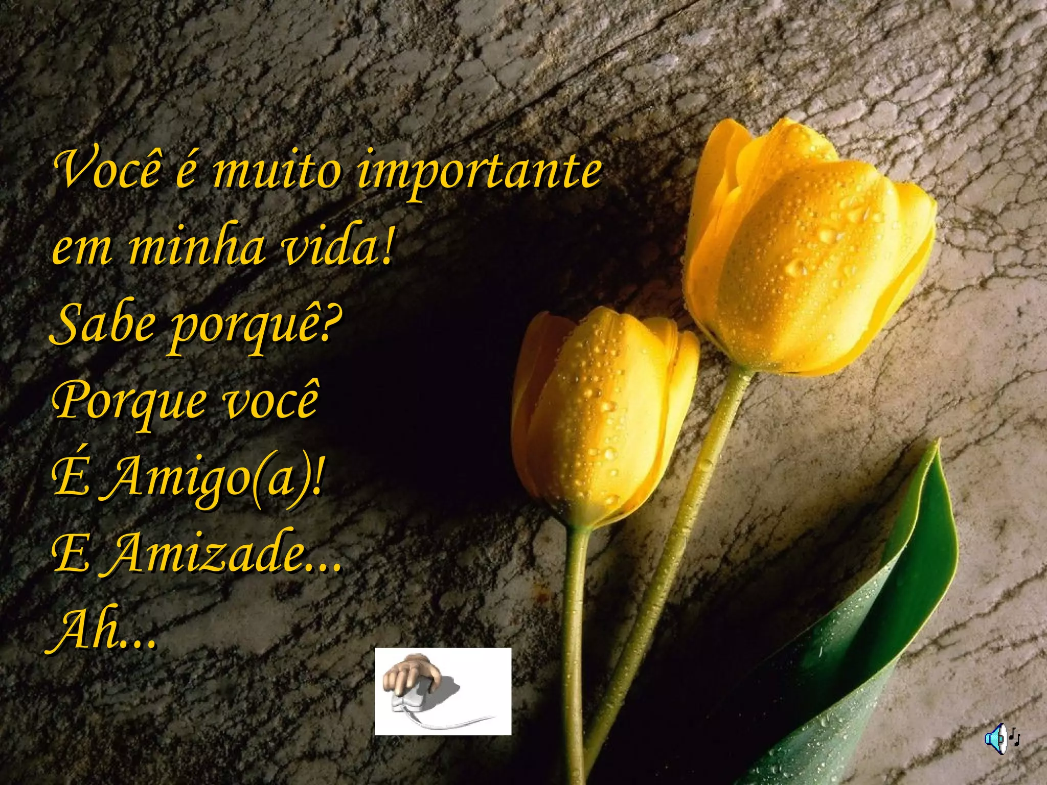 O documento celebra a amizade e seu significado profundo. A amizade é descrita como a forma suprema de amar, doar-se sem esperar nada em troca, e estar sempre ao lado um do outro, mesmo em momentos difíceis. A mensagem é dedicada a alguém especial na vida do autor, a quem ele se orgulha de chamar de amigo.