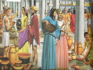 a) A arte grega se caracteriza pelo racionalismo, valorização do belo e do corpo humano e representações da mitologia. Os principais exemplos são a arquitetura de templos como o Partenon e a escultura do período clássico com ênfase no movimento.