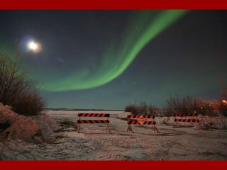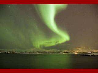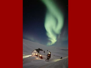 As auroras boreais e austrais ocorrem quando partículas eletrostáticas emitidas pelo Sol interagem com o campo magnético da Terra, fazendo com que ele se distorça e gere padrões de luz colorida nos céus polares. O documento também descreve a música "Carmina Burana", cuja letra foi encontrada em manuscritos medievais do século XIII na Baviera.