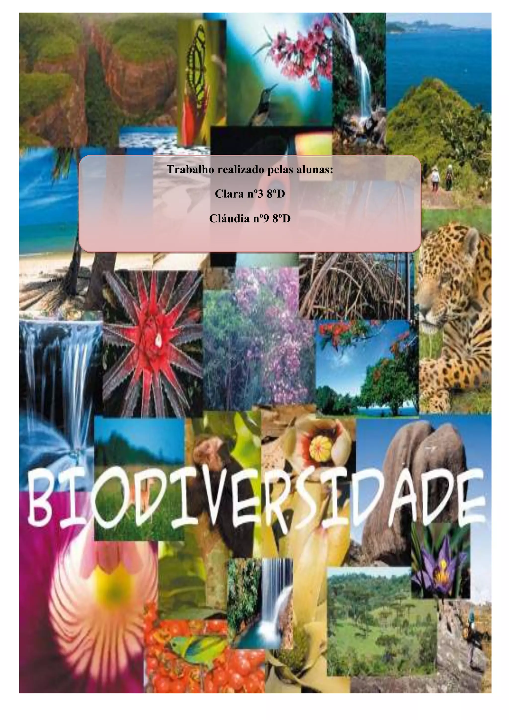 Este documento discute a biodiversidade e os esforços para protegê-la. Ele descreve como a biodiversidade está diminuindo devido às ações humanas e lista várias espécies em risco de extinção. Também explica os diferentes tipos de áreas protegidas, incluindo parques naturais, reservas naturais e parques nacionais, que buscam preservar habitats e espécies.