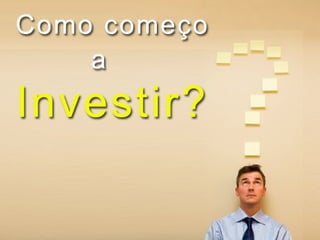 O documento fornece uma introdução sobre investimentos em ações, comparando investimentos em fundos de ações e conta corrente em corretora. Explica sobre análise fundamentalista, técnica e riscos envolvidos, concluindo que não existe método perfeito e que é importante controlar a emoção.