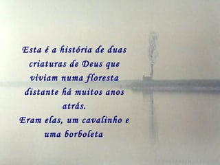A história narra a amizade entre uma borboleta e um cavalinho preso a um cabresto. A borboleta visitava o cavalinho diariamente, levando coices mas também sorrisos. Um dia, a borboleta parou de aparecer e o cavalinho só percebeu quando foi procurá-la, descobrindo que ela havia morrido devido aos ferimentos dos coices.