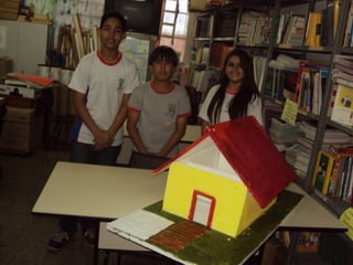 O documento apresenta os conceitos básicos de geometria como plano, ponto, retas e ângulos e suas medidas em centímetros e área. Também explica como esses conceitos são aplicados na construção de uma casa, listando elementos como teto, laje, paredes, portas e janelas. No final, parabeniza os alunos e agradece a colaboração da coordenadora.
