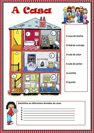 Identifica as diferentesdivisões da casa.