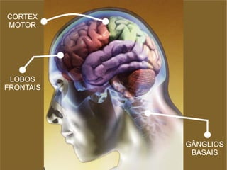 O documento discute a relação entre mente e cérebro. Afirma que o cérebro é dividido em três regiões - os lobos frontais, o córtex motor e o sistema nervoso inicial - cada um associado a diferentes funções mentais como instinto, razão e ideal superior. Também compara a mente a um castelo de três andares representando o consciente, subconsciente e superconsciente.