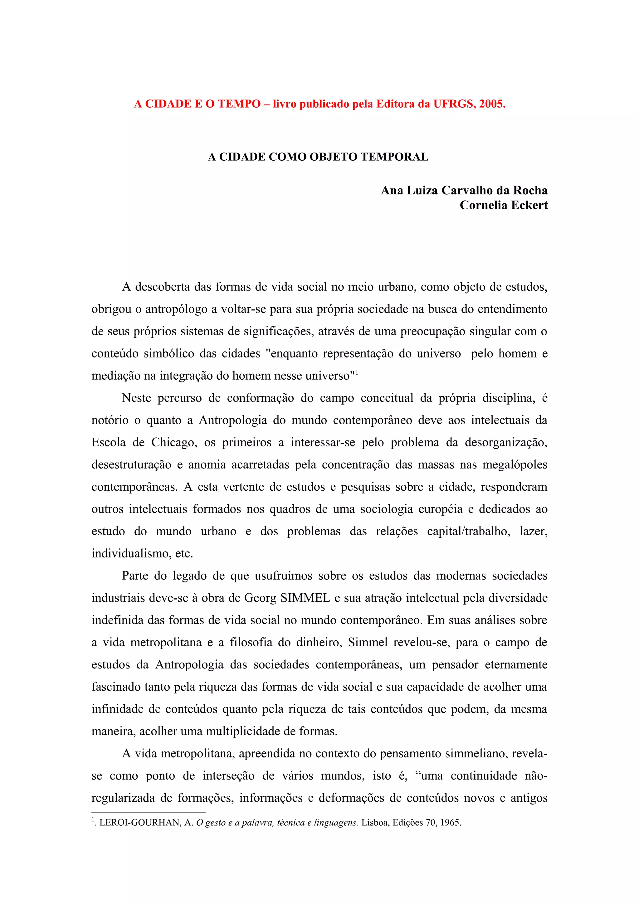 O livro 'A Cidade e o Tempo' explora a vida social nas cidades contemporâneas através da antropologia, destacando a influência de pensadores como Georg Simmel. Aborda como a dinâmica urbana molda as interações e representações sociais, enfatizando a diversidade de experiências humanas e as complexidades das identidades urbanas. Os estudos sobre a cidade são apresentados como essenciais para compreender as relações sociais e a produção de significado em um contexto de transformação cultural.